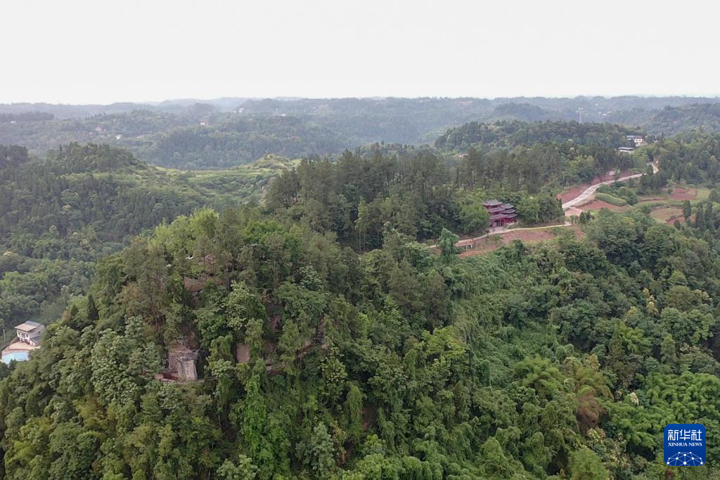 茗山寺所在的虎頭山,左前方小山包處便是茗山寺(無人機照片,6月14日攝)。
