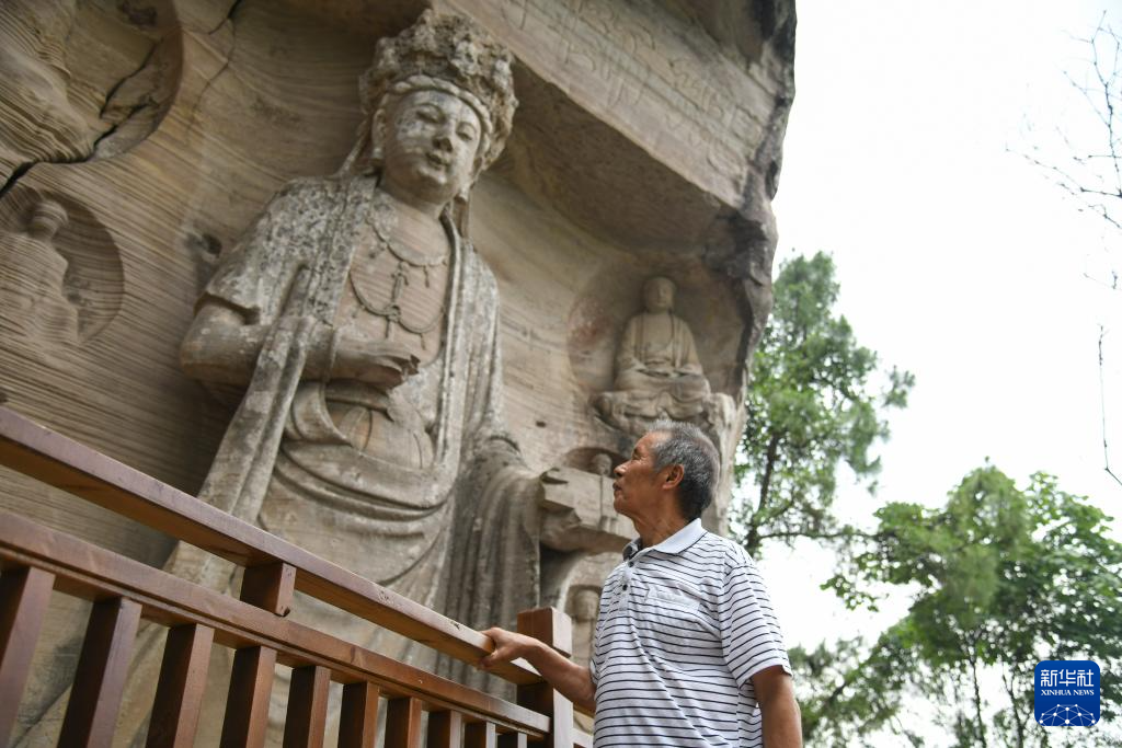 “小時候我們就知道山上有很多造像,那會兒似乎比現在更美?!痹橛嗷貞?,20世紀80年代,他隨叔叔上山修繕茗山寺,沒想到一來,就再也沒有離開。他放棄了外出發展的機會,主動從老一輩人手中接管了守護石刻的重任,“這些都是前輩留下來的寶貝,我有義務保護好它們?!痹橛嗾f。