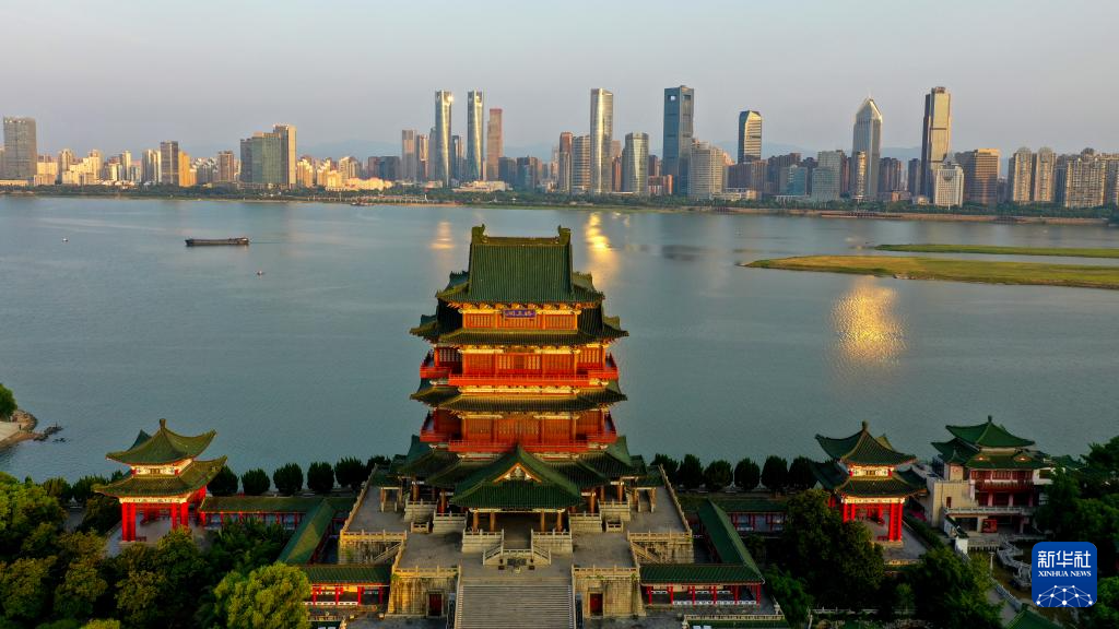 晨光中的江西南昌滕王閣景區(7月7日攝,無人機照片)。