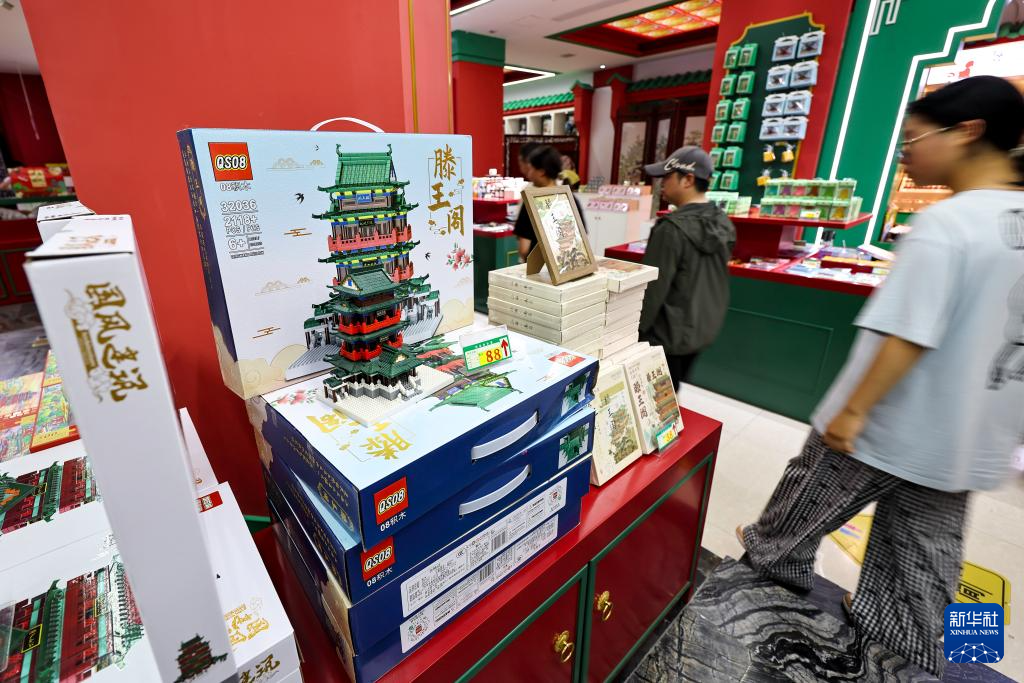 這是7月7日在江西南昌滕王閣景區內拍攝的滕王閣文創產品。