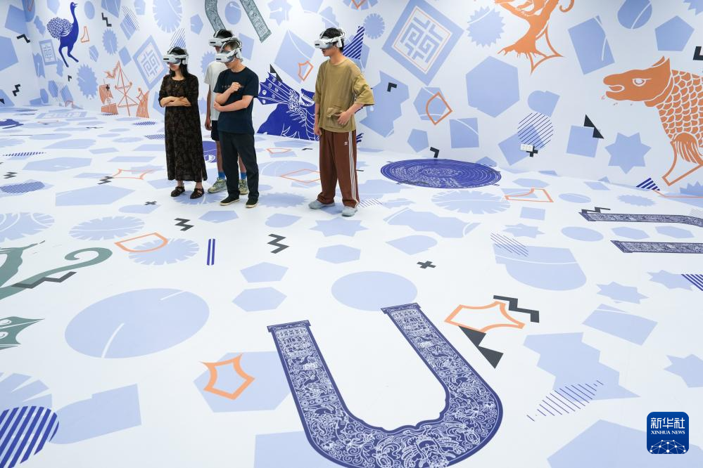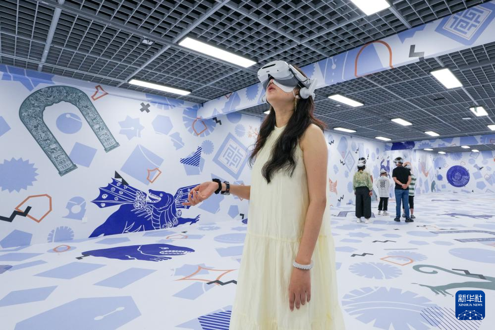 7月10日,觀眾在南京博物院觀看展覽的球形視頻介紹。