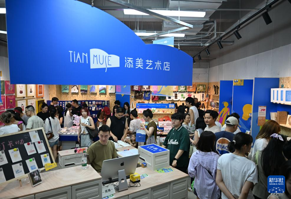 市民在天美藝術街區內的一家藝術店挑選商品(7月12日攝)。