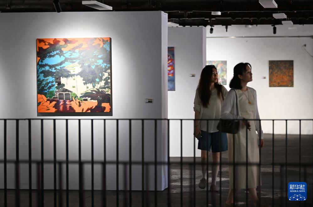 7月13日,市民在天美藝術街區參觀藝術作品展。