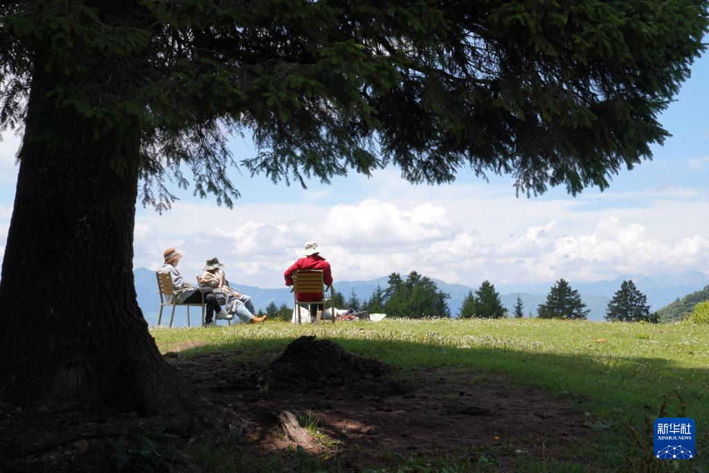 游客在舟曲拉尕山上游玩(7月12日攝)。