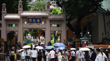 7月16日,參觀者在漢魏洛陽故城遺址博物館觀看展品陶百花燈。