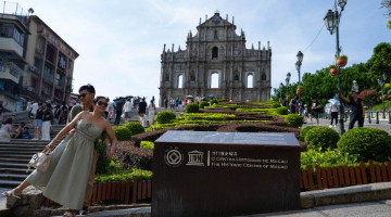 7月16日,參觀者在漢魏洛陽故城遺址博物館觀看展品大吉瓦當。
