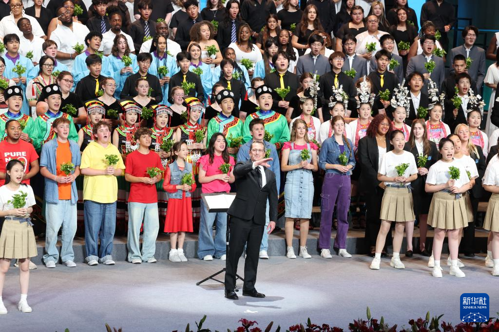 當日,2025年“鼓嶺緣”中美青少年合唱周閉幕演出在中央歌劇院舉辦。此次活動以“歌唱和平”為主題,中美青少年用歌聲唱響青春、和平與友誼。