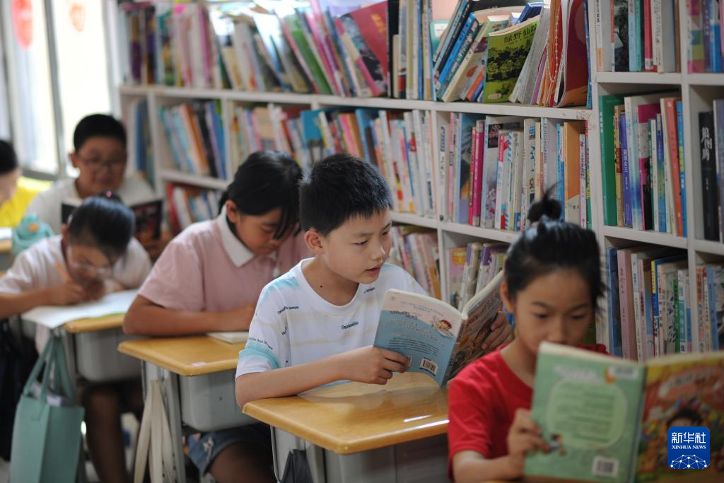 7月17日,小朋友在山東省高密市經濟開發區馮家莊村寶德書院閱讀。