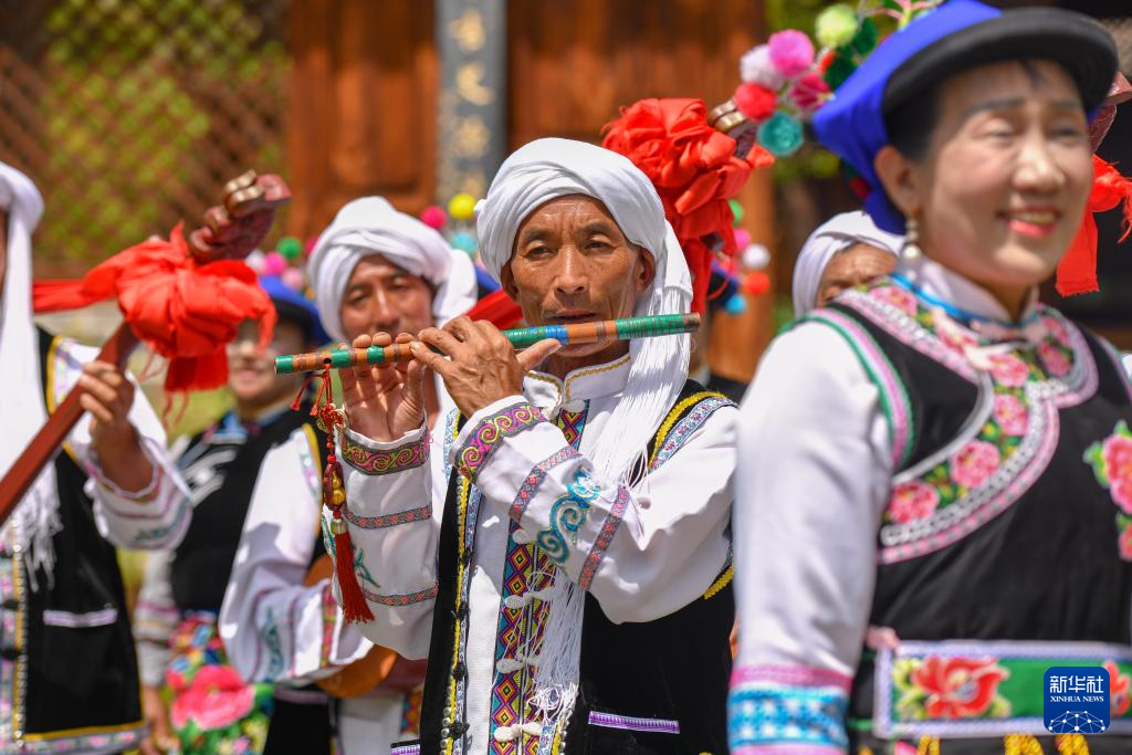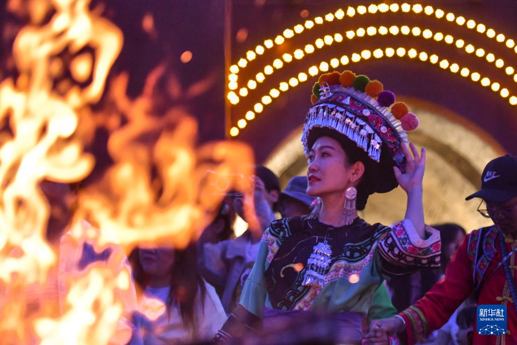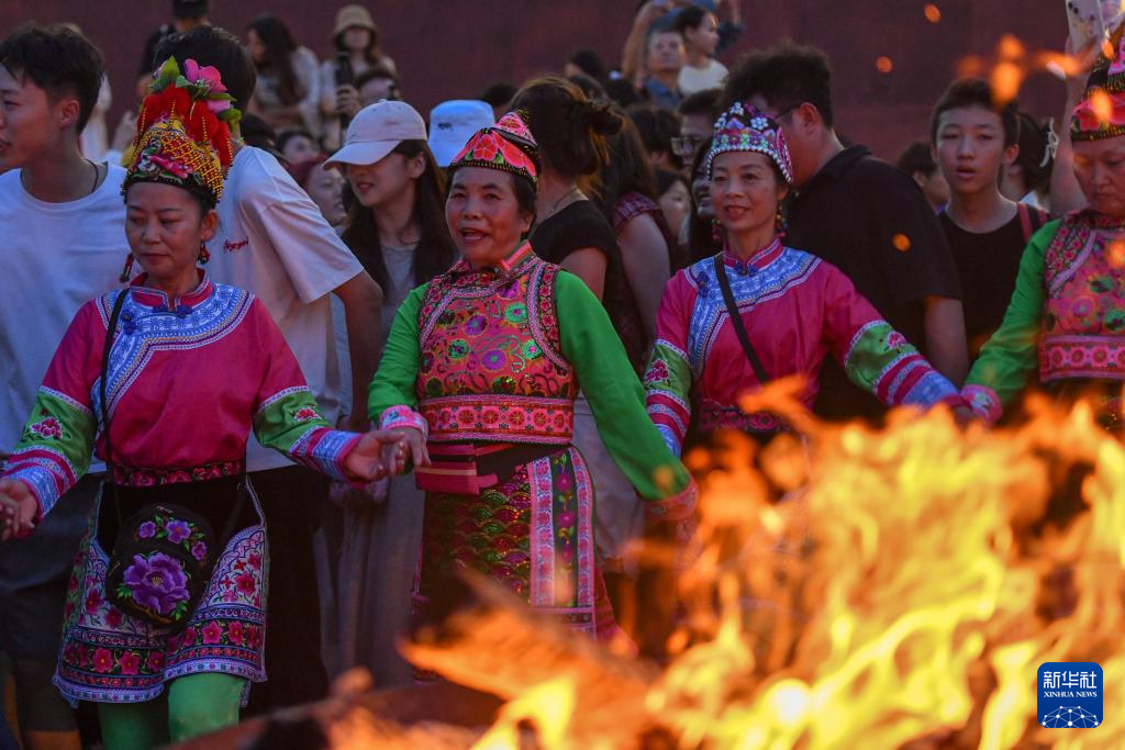 篝火熊熊燃燒,舞動間銀飾叮當作響。在云南省大理白族自治州巍山彝族回族自治縣,彝族打歌隊的傳承人舉起蘆笙,一聲悠長的音律劃破夜空。剎那間,踢踏舞步響徹大地,圍成圓形的舞陣如漣漪般蕩開。笛聲、三弦聲、腳踏聲交織成古老的韻律——這是每年巍山火把節,拱辰樓廣場上不變的風景。