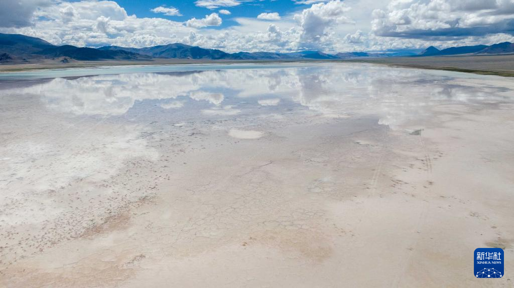 7月20日拍攝的位于西藏阿里地區革吉縣的鹽湖一景(無人機照片)。