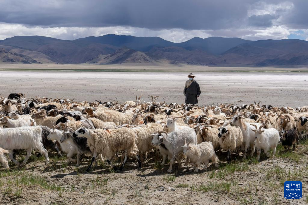 7月20日,革吉縣牧民把裝好的鹽綁在羊身上。