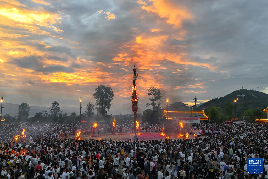 7月19日晚,2025年巍山火把節在云南省大理白族自治州巍山彝族回族自治縣的圣火廣場開幕。開幕式上,當地精心組織了文藝演出、篝火晚會、煙花表演等,數萬名當地群眾與來自各地的游客歡聚一堂,共度節日。