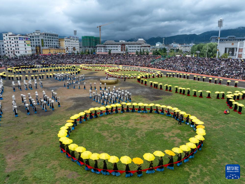 2025年彝族傳統火把節開幕式(7月22日攝,無人機照片)。