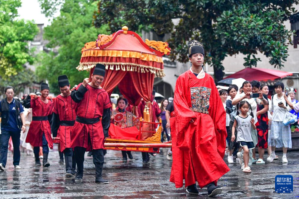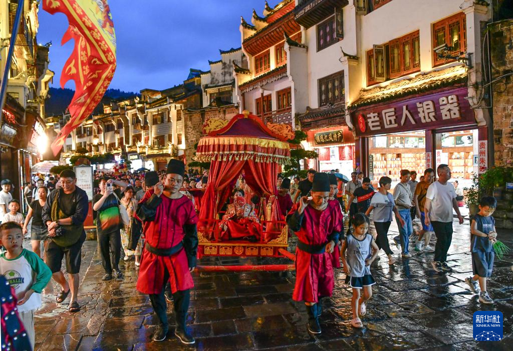 7月22日,當地群眾在鎮遠古城參加“龍神嫁妹”民俗巡游展演。