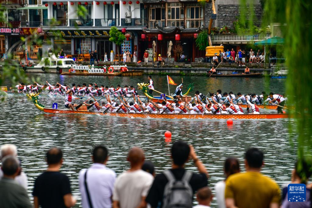 當日,2025年民體杯全國龍舟比賽在貴州省黔東南苗族侗族自治州鎮遠古城開幕。來自全國各地的10支龍舟隊伍同場競技,在鎮遠古城的?陽河上參加為期兩天的水上競速。賽事期間同時舉辦非遺展演、“龍神嫁妹”主題巡演等豐富多彩的活動。