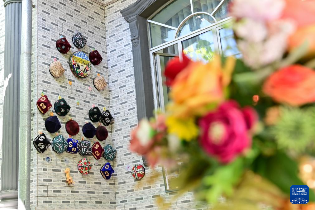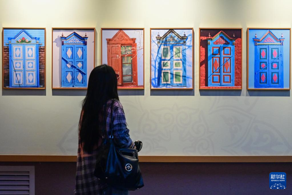 游客在新疆伊犁哈薩克自治州伊寧市伊犁老城喀贊其文化旅游區石榴花展覽館參觀(7月23日攝)。