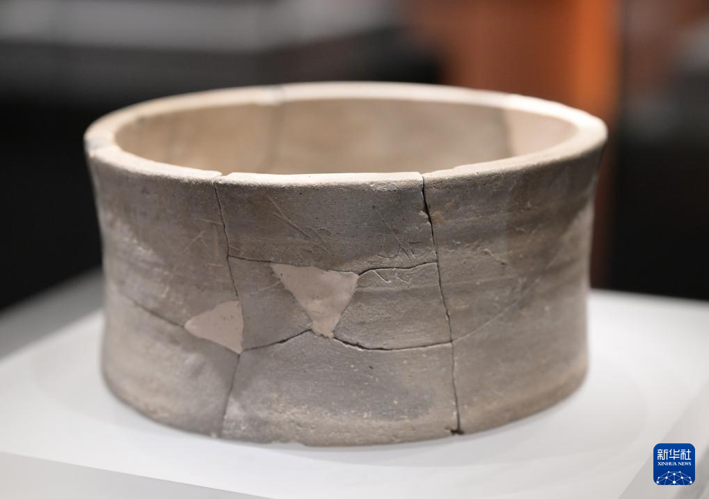 這是一件出土自雄安古州城遺址的戰漢時期的陶量(7月28日攝)。