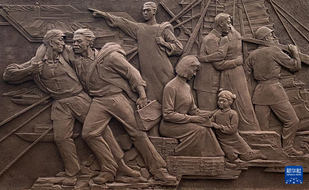 這是解放軍文工團雕塑創作員郎鉞創作的,以東江縱隊抗戰為背景的浮雕《南粵烽火 衛士先驅》。