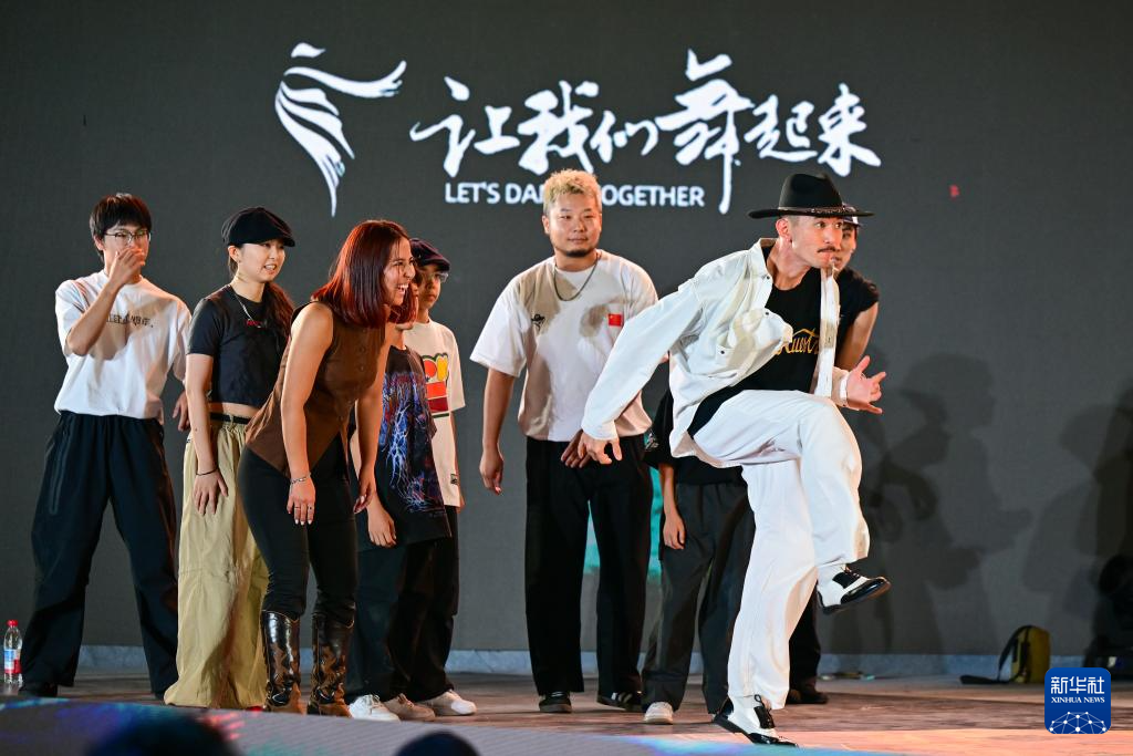 8月3日,中外舞者在2025“絲綢之路”街舞展演活動中進行斗舞展示。新華社記者 丁磊 攝