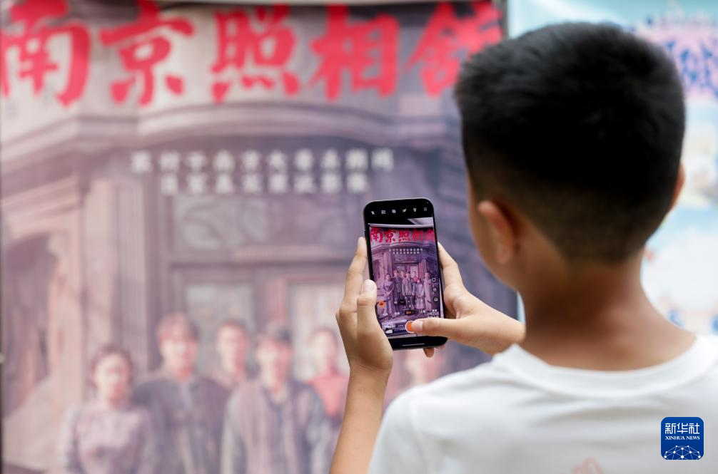 8月10日,觀眾在云南省麗江市一家影城拍攝電影《南京照相館》預告片。