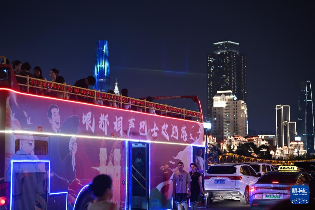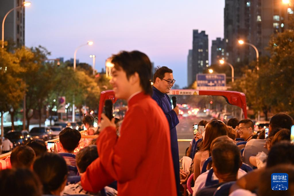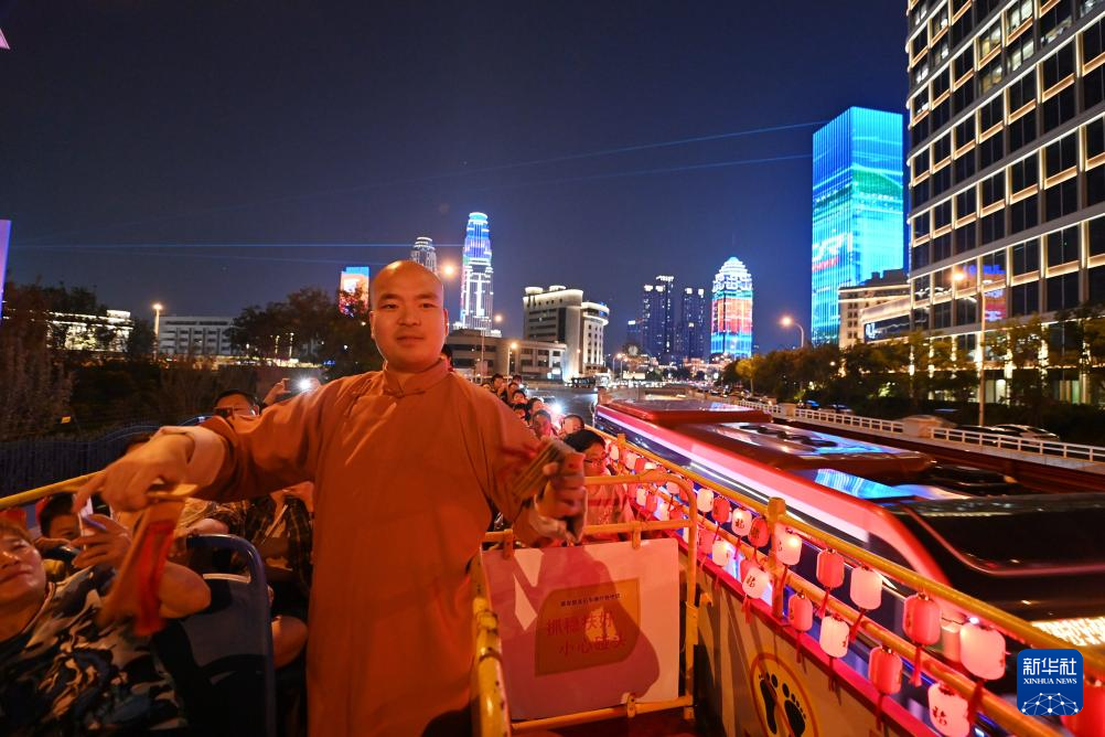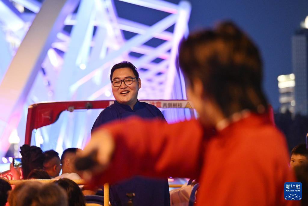華燈初上,在天津市中心城區的海河岸邊,一輛滿載歡聲笑語的雙層“相聲巴士”往來穿梭于古文化街、“天津之眼”摩天輪等地標景點間,為游人帶來全新的夜游體驗。