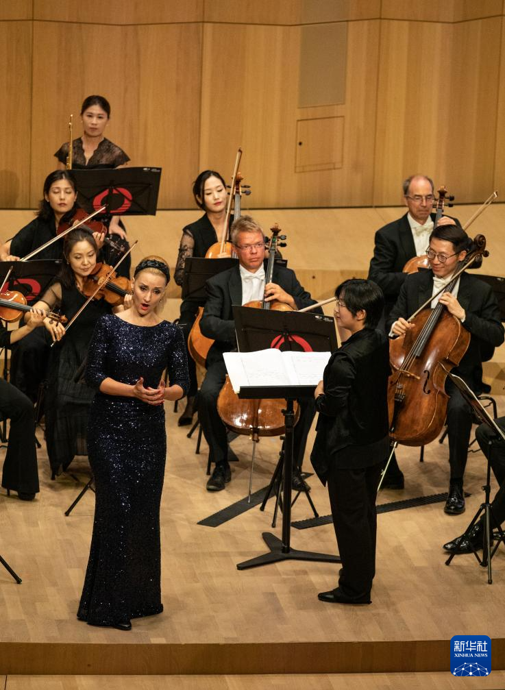 8月13日,在德國法蘭克??藗愗惛褚魳穼W院卡薩爾斯音樂廳,女高音歌唱家威廉明娜·特勞布(前左)演唱中國民歌《茉莉花》。