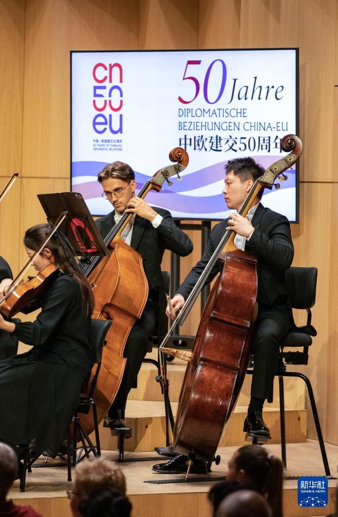 8月13日,在德國法蘭克??藗愗惛褚魳穼W院卡薩爾斯音樂廳,中德音樂家為觀眾演奏。