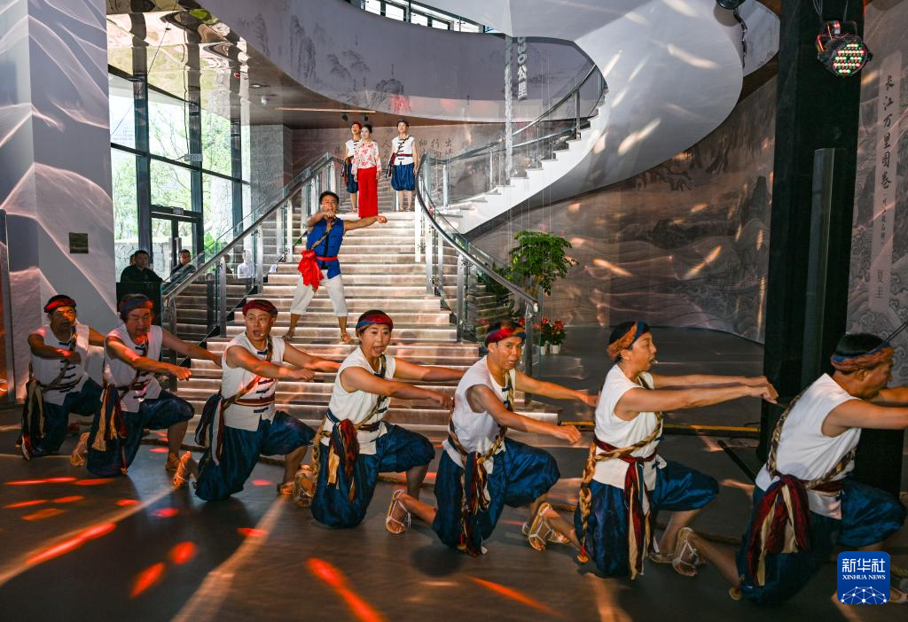 8月15日,演員在川江航運文化園開園儀式上表演歌舞《川江號子》。