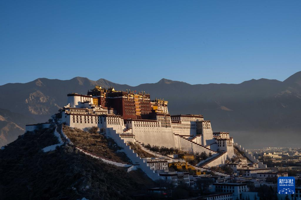 沐浴在晨光之中的拉薩布達拉宮(2025年1月1日攝)。新華社記者 旦增尼瑪曲珠 攝