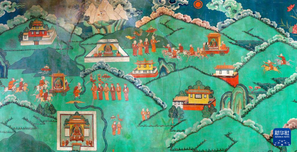 這是布達拉宮壁畫,講述了文成公主進藏“和親”的畫面(資料照片)。新華社發