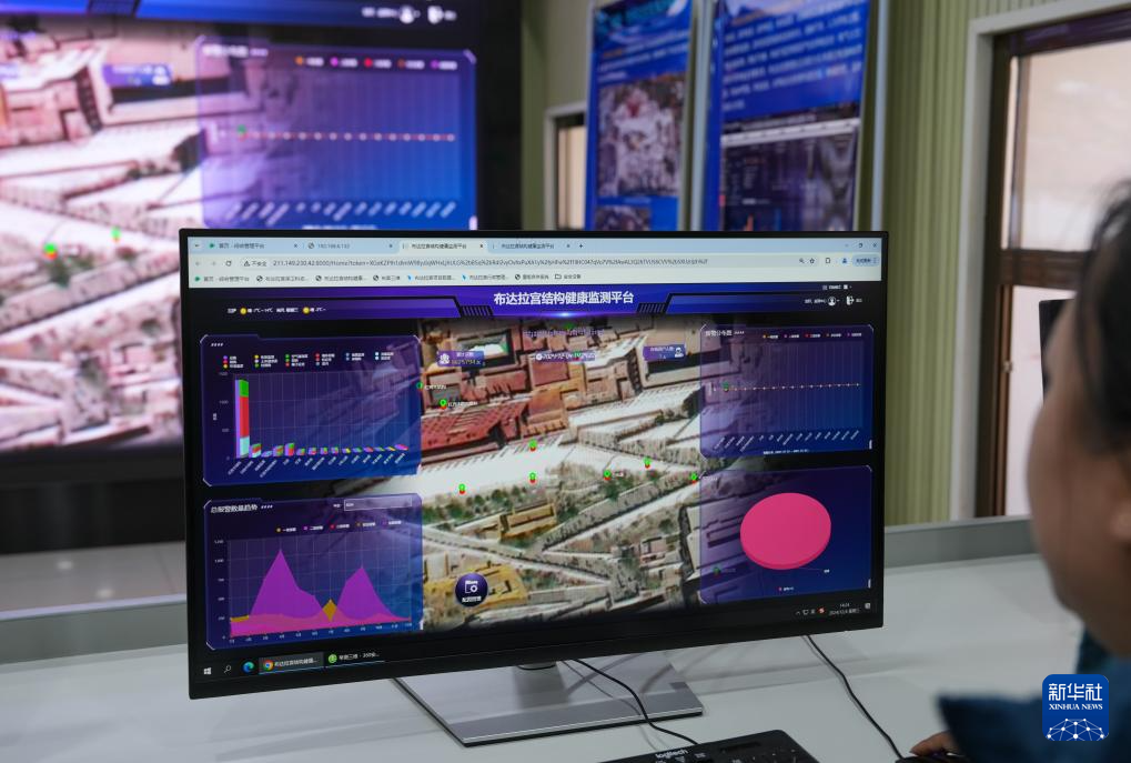 在布達拉宮監測中心,工作人員正忙著通過數字化平臺,實時監控布達拉宮的“一磚一瓦”。