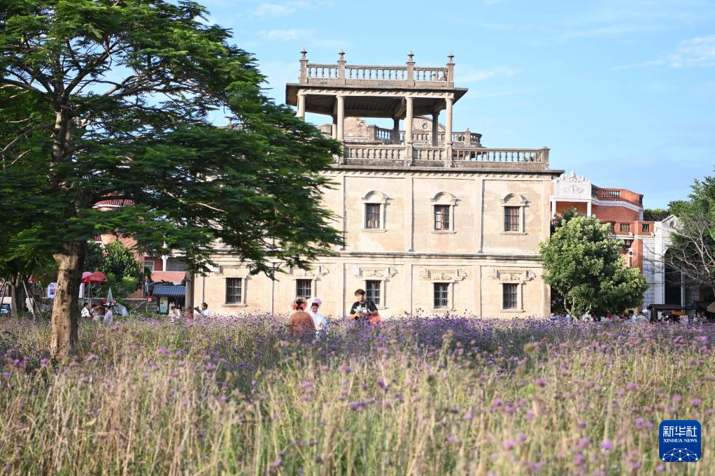 8月19日,人們在福建晉江梧林村的槍樓游玩。