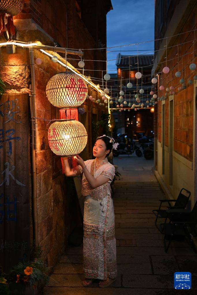 8月19日,在福建晉江梧林村,演員在融合情景劇《僑批往事》中表演娘惹舞。