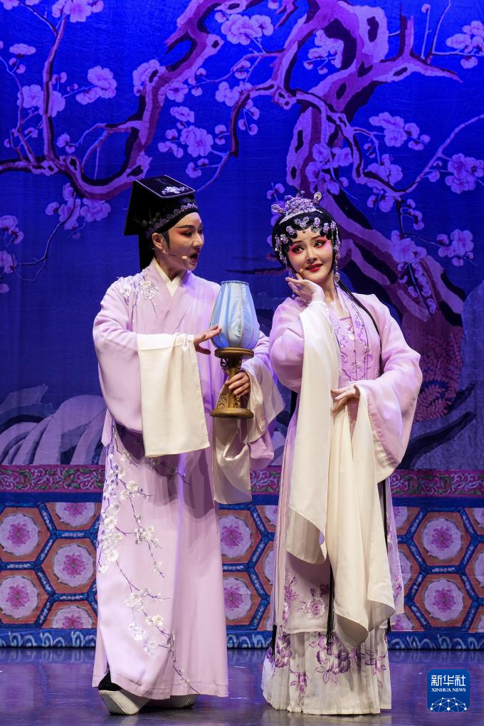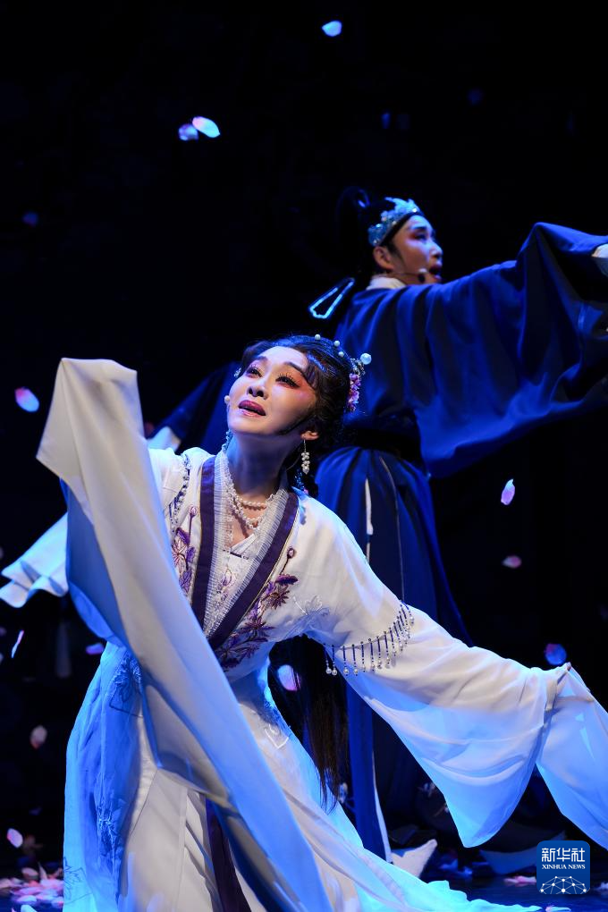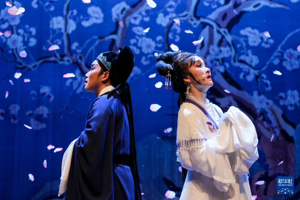 浙江小百花越劇院21日在英國倫敦為當地觀眾帶來《愛情的花園》越劇折子戲專場,開啟英國、德國巡演。劇院團隊當日在倫敦蕭劇院連演兩場,吸引800余名觀眾到場觀看。演出選取《梁?!な讼嗨汀贰都t樓夢·葬花吟》《牡丹亭·幽媾》《陸游與唐琬·題詩壁》等經典越劇折子戲片段,讓海外觀眾近距離感受中國戲曲的藝術魅力與傳統韻味。