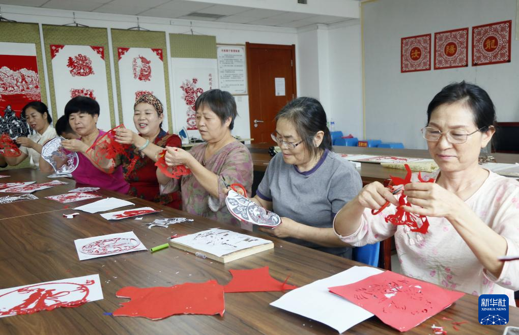 8月26日,在河南省洛陽市汝陽縣人民文化館,剪紙藝人創作七夕主題剪紙作品。