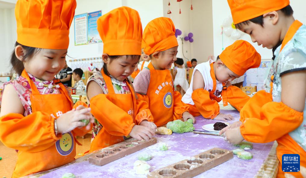 8月26日,在山東省青島市城陽區河套街道西河套社區,小朋友學做七夕巧果。