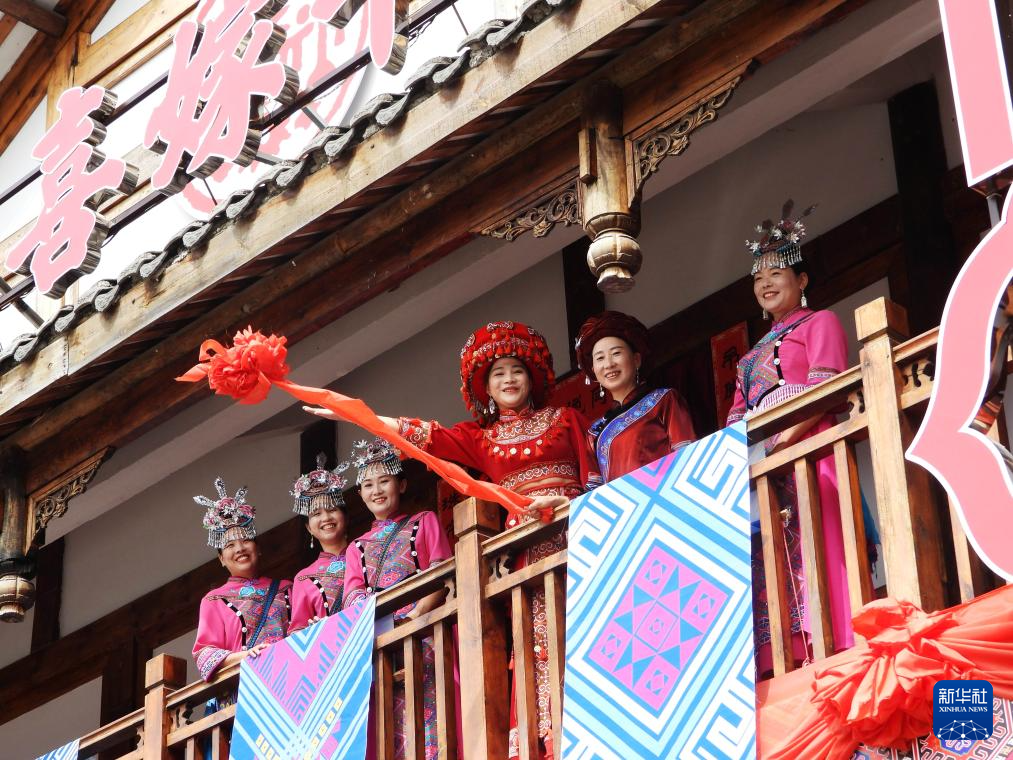 8月26日,在四川省達州市巴山大峽谷景區,演員為游客表演迎七夕土家族婚嫁民俗。