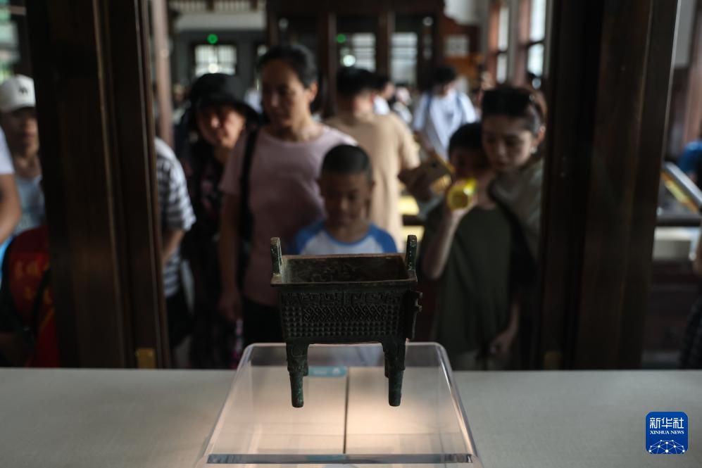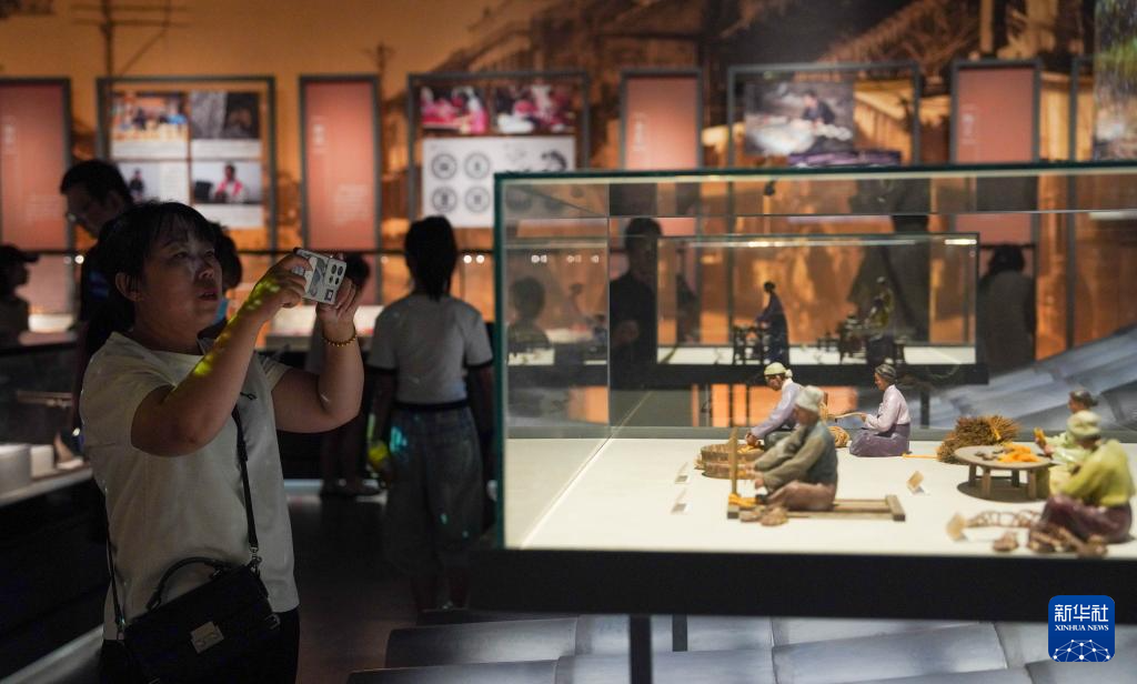 8月9日,游客在吉林省延邊博物館參觀、拍照。