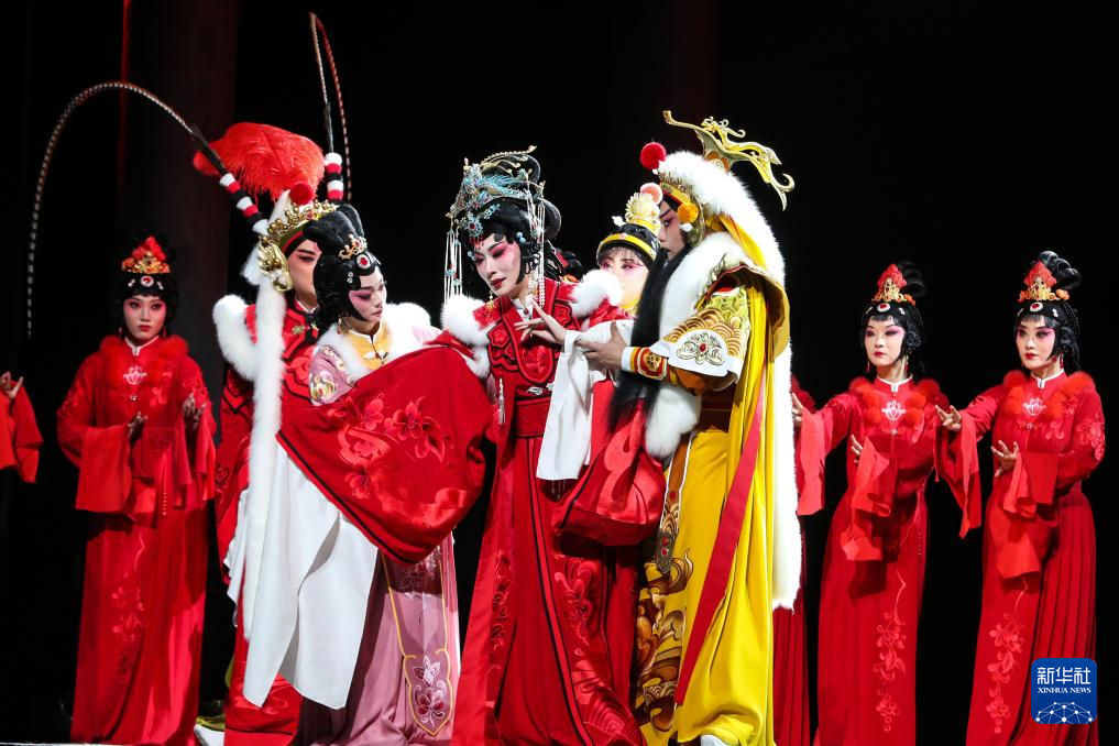 9月5日晚,演員在蘭州音樂廳表演新編歷史京劇《涼州辭》。