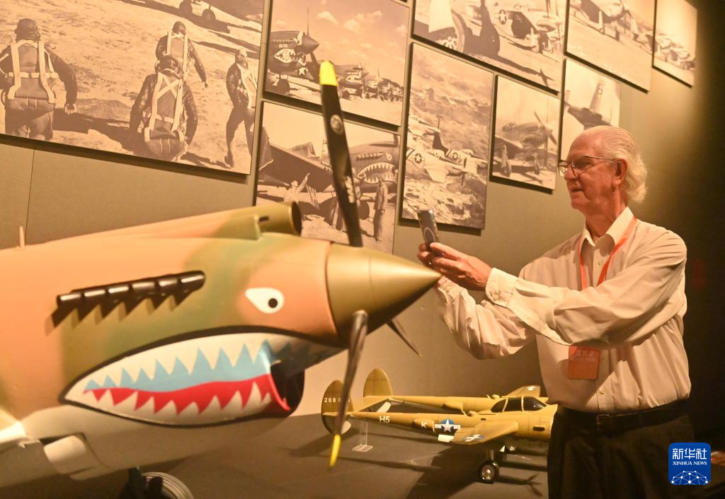 9月7日,在廣西柳州市軍事博物園,嘉賓在飛虎隊常設展覽上參觀拍照。