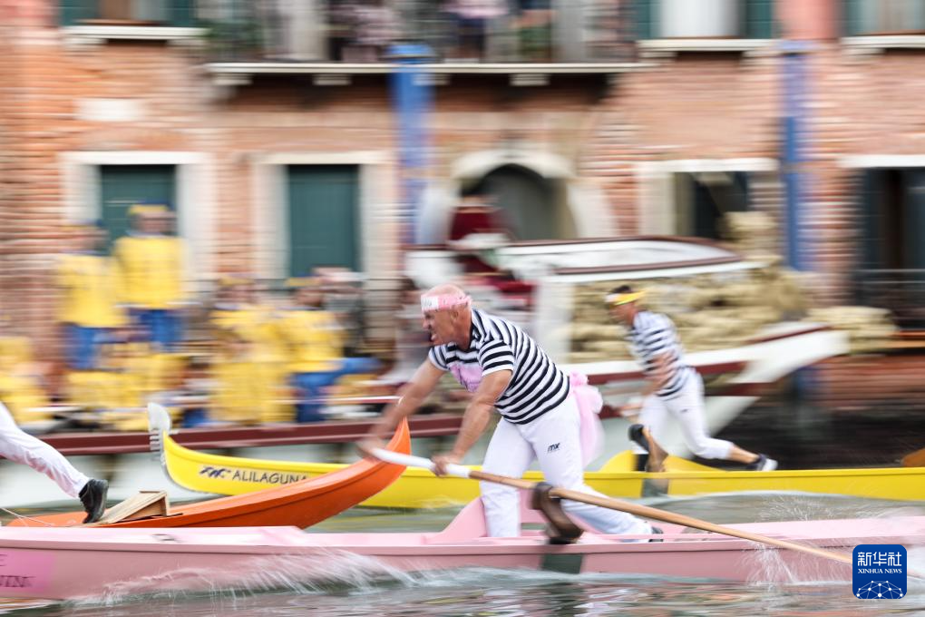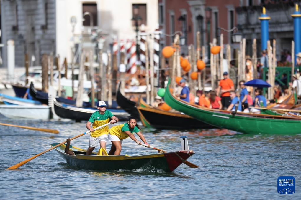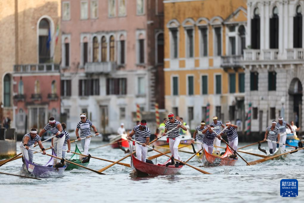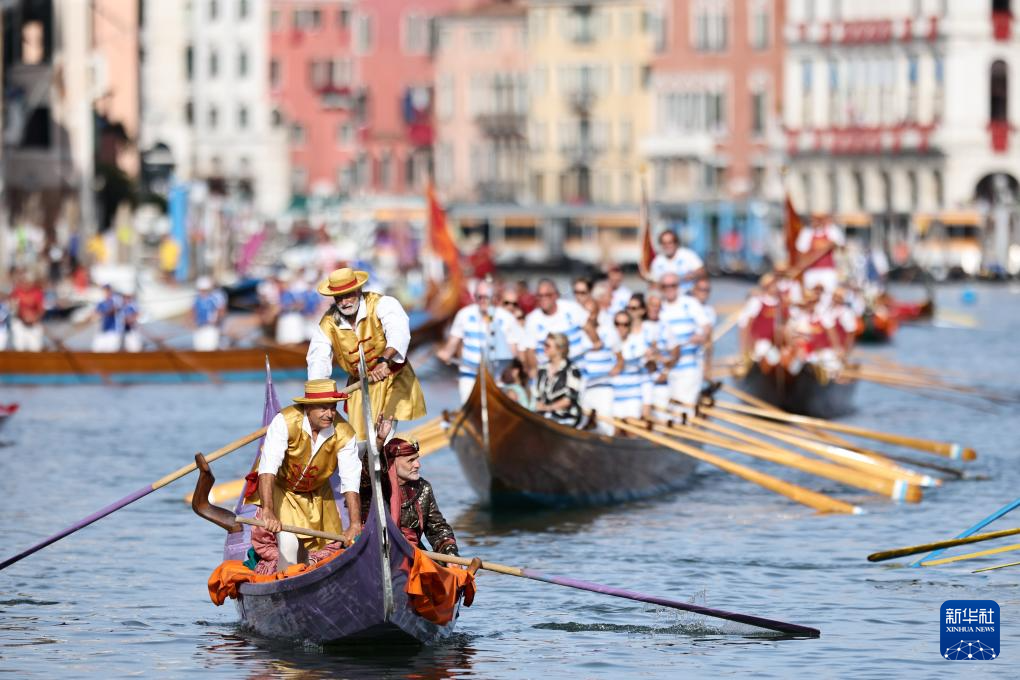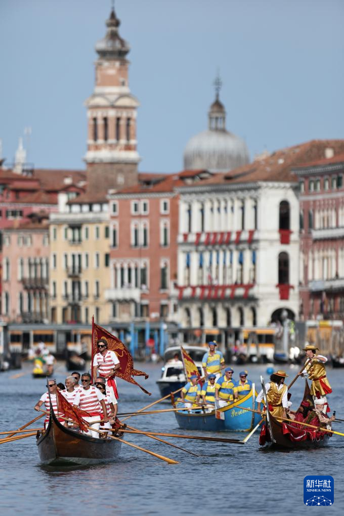 9月7日,在意大利威尼斯,人們參加賽船節。
