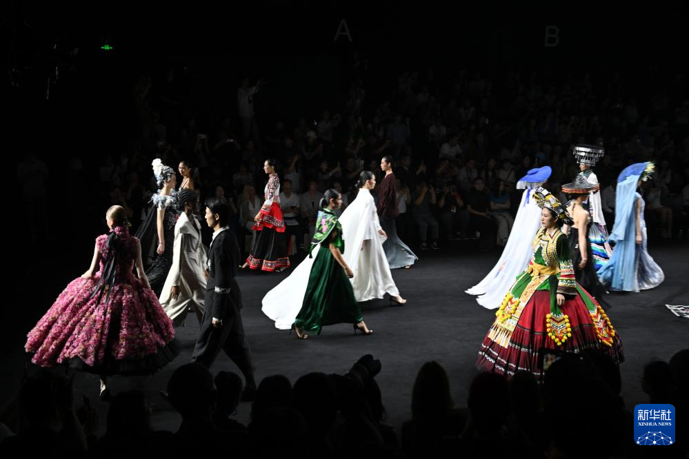 9月8日,中國國際時裝周·楚雄時裝周彝繡非遺創新專場在北京舉行。手工刺繡匠人、設計師與模特同臺,演繹融合非遺服飾元素的時尚作品。