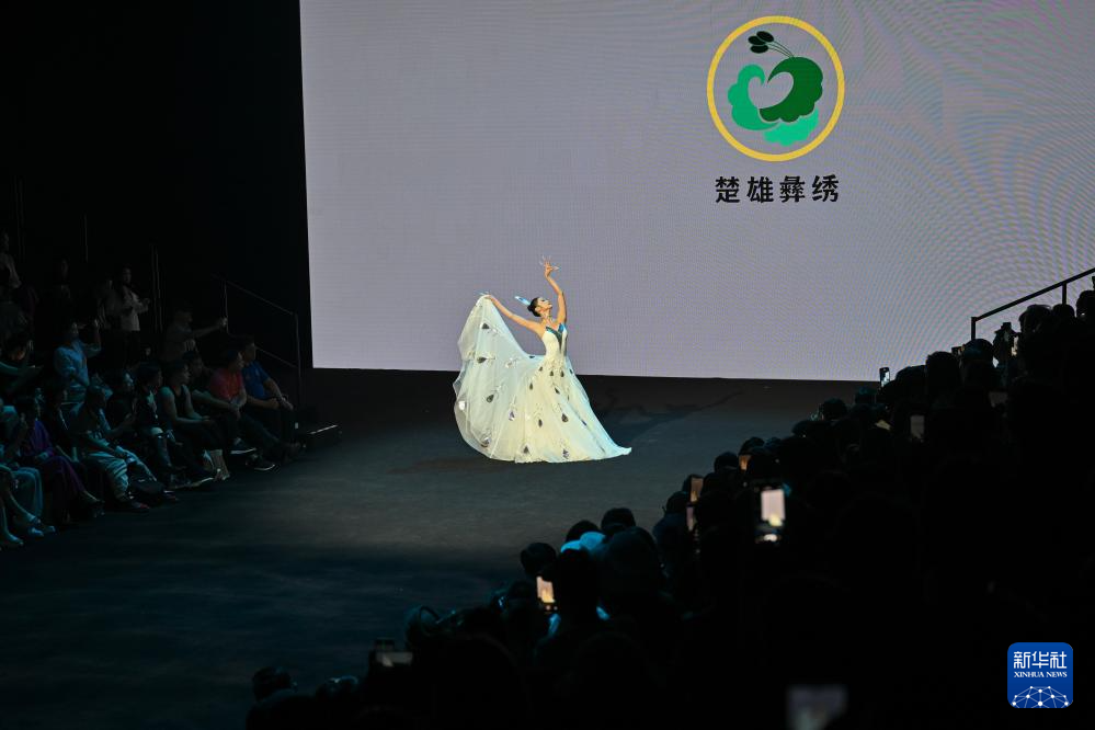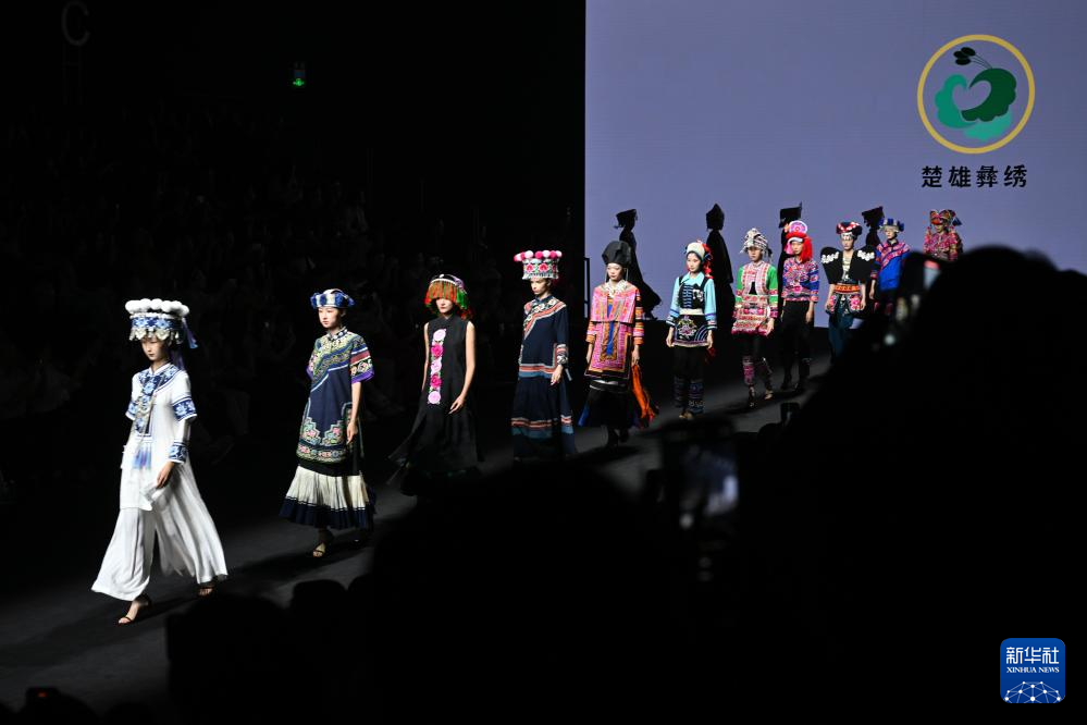9月8日,模特在中國國際時裝周·楚雄時裝周彝繡非遺創新專場上展示時裝。