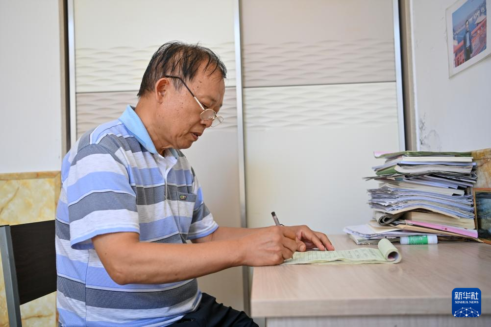 杜德建在位于山西省永濟市卿頭鎮張坊村的家中創作詩歌(9月9日攝)。