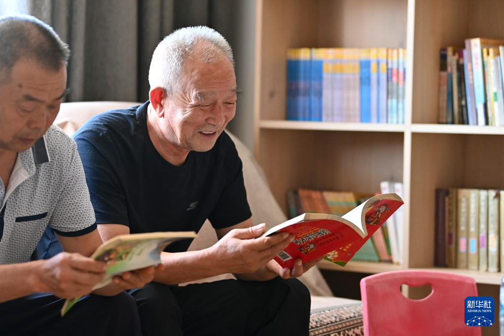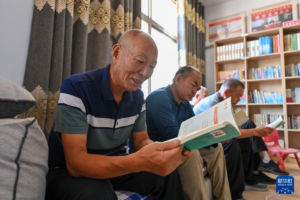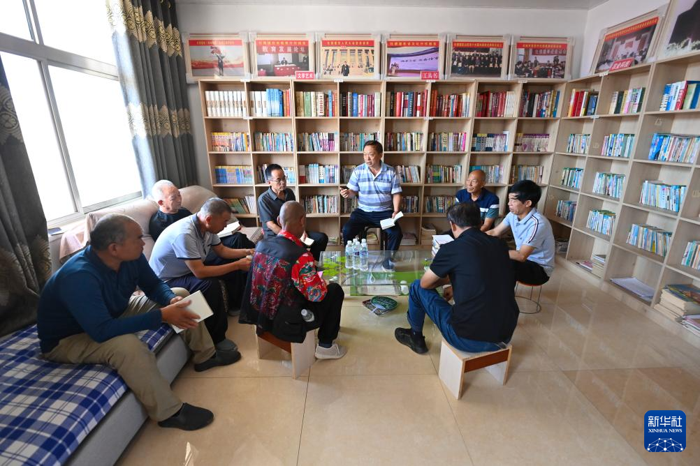 村民在位于山西省永濟市卿頭鎮張坊村的家庭圖書館內看書(9月9日攝)。