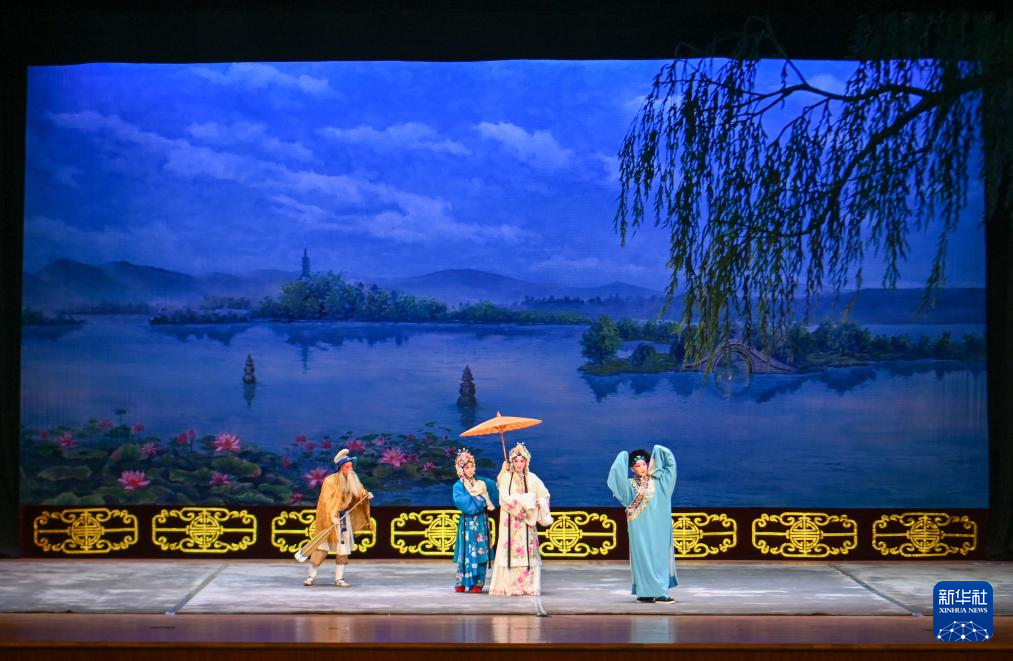 9月13日,演員在天津大禮堂表演開幕戲劇《白蛇·喜見升卿》。