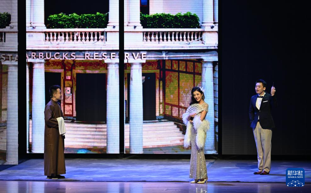 9月13日,演員在天津大禮堂表演話劇《日出》。