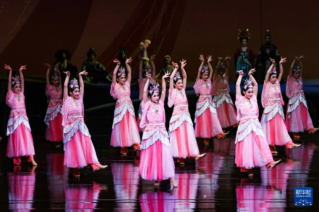 9月20日晚,演員在敦煌大劇院表演新版《絲路花雨》。