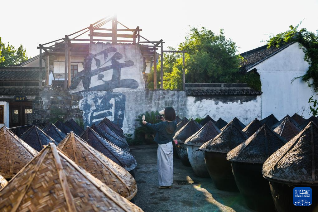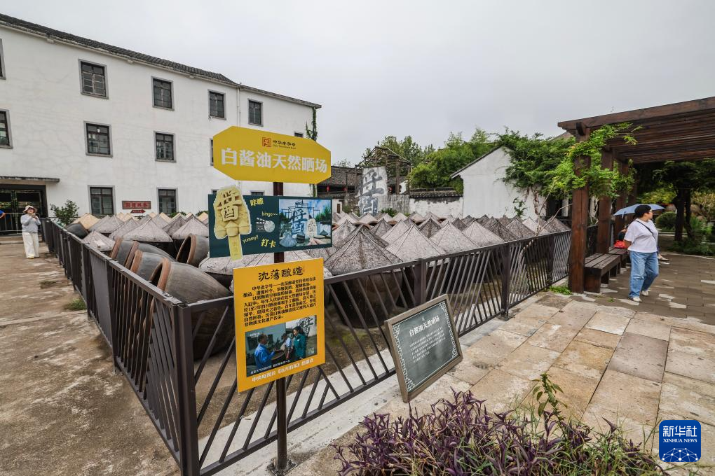 9月20日,游客在游覽沈蕩鎮的中華老字號企業海鹽沈蕩釀造有限公司。中華老字號企業海鹽沈蕩釀造有限公司位于浙江省嘉興市海鹽縣沈蕩古鎮,其前身為始創于清光緒年間的泰興醬園,至今已有100多年歷史。近年來,沈蕩釀造在堅守傳統、古法自然釀造的基礎上,結合沈蕩古鎮旅游開發,配合打造“千年古鎮、百年老廠”文旅綜合項目,讓更多人體驗非遺和傳統文化的魅力。