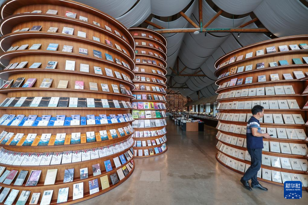 這是9月19日拍攝在沈蕩鎮拍攝的谷倉文化產業園書店。谷倉文化產業園由之前的國營糧倉改建而成,也是當地的網紅打卡點之一。
